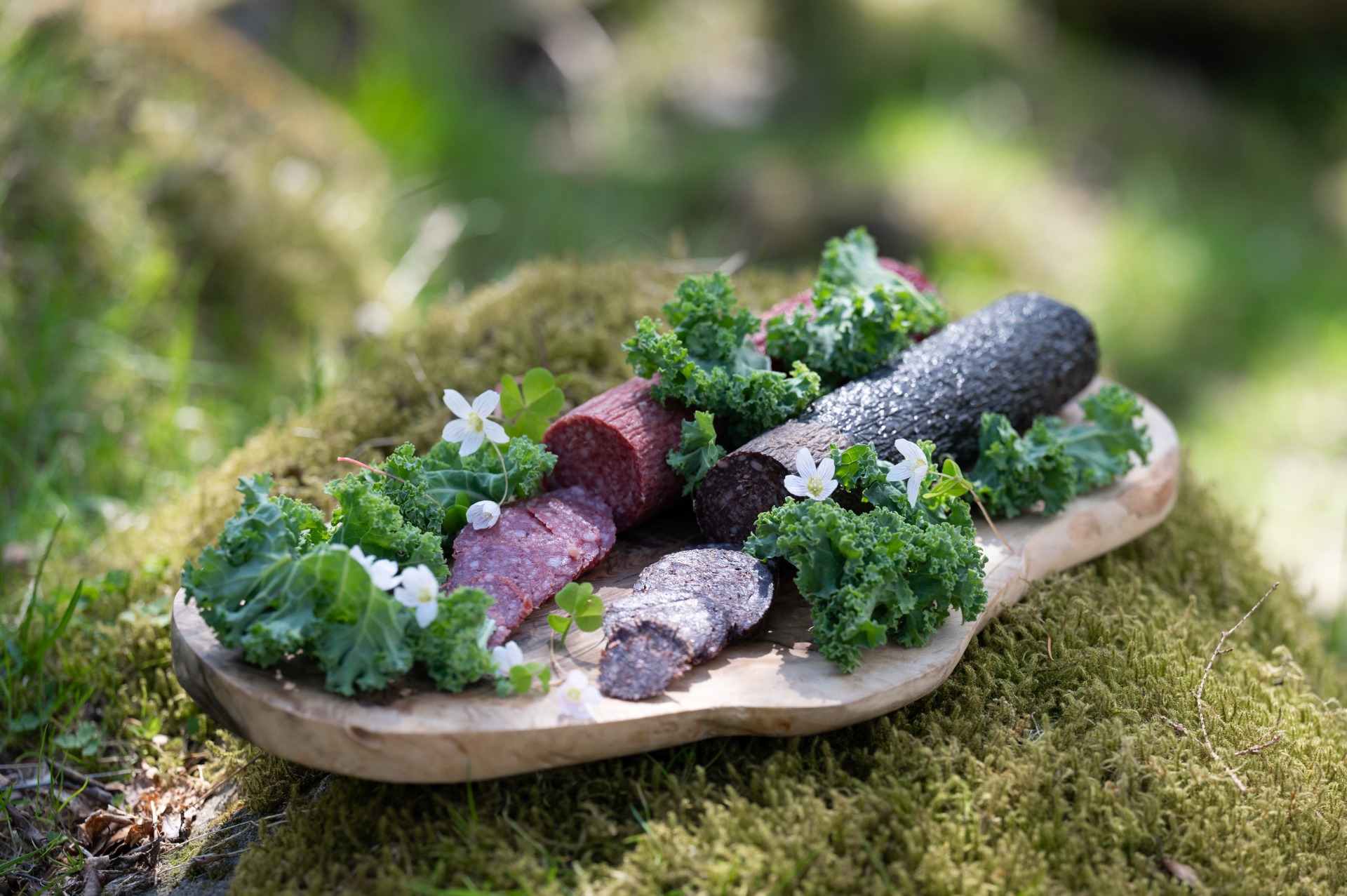 Ingredienser: Fårekjøtt fra Fladene Gard, vegetabilsk protein salt, dekstrose, krydder, konserveringsmiddel E250, antioksidant E301.